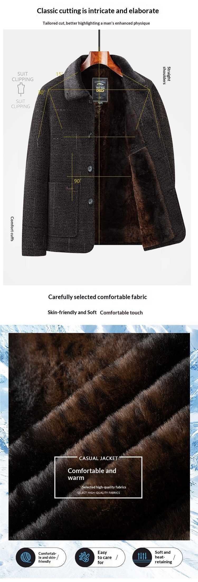 Middle-aged And Elderly Cotton-padded Jackets Dad-style Outerwear Lapel Wool Coats